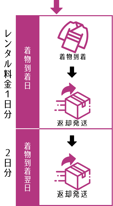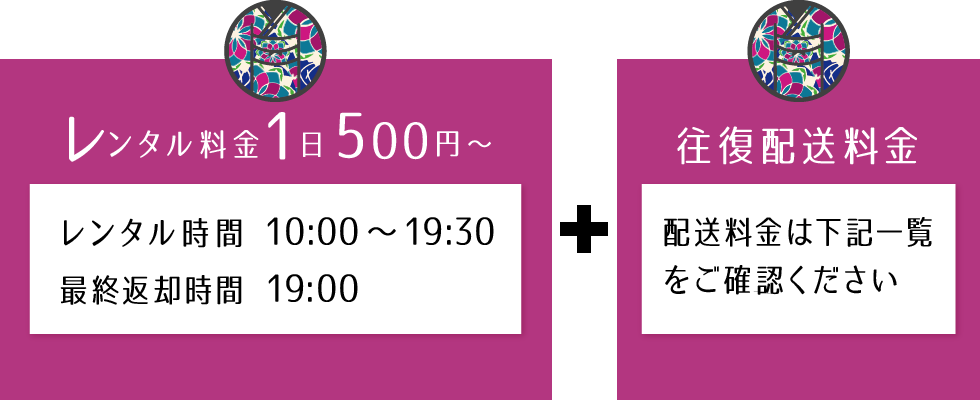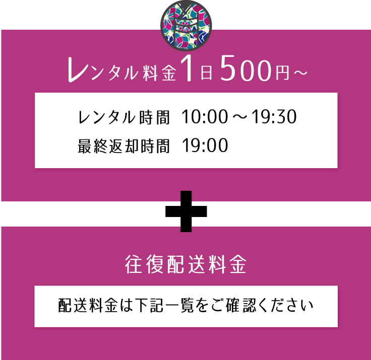 カジュアル着物から日本全国に着物を配送レンタルしています。到着当日に返却発送を行っていただければ一泊料金+往復配送料で利用可能。着物到着日(午前中着の時間指定になります)からのレンタル料金起算になりますので安心してご利用いただけます