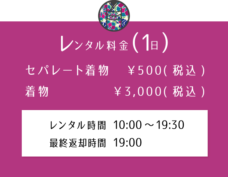 東京秋葉原・御茶ノ水いずれからも徒歩5分の好立地。お店に並ぶたくさんの着物の中からご自分のお好みにあった1着をじっくりと選べます。レンタルは1日単位で、営業時間内ならいつでも返却OK!気に入った着物は購入もできますよ。